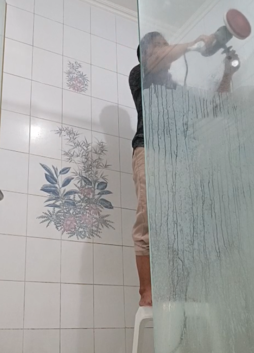 Layanan khusus untuk menghilangkan jamur dan noda membandel pada kaca jendela, pintu kamar mandi, maupun kaca bangunan