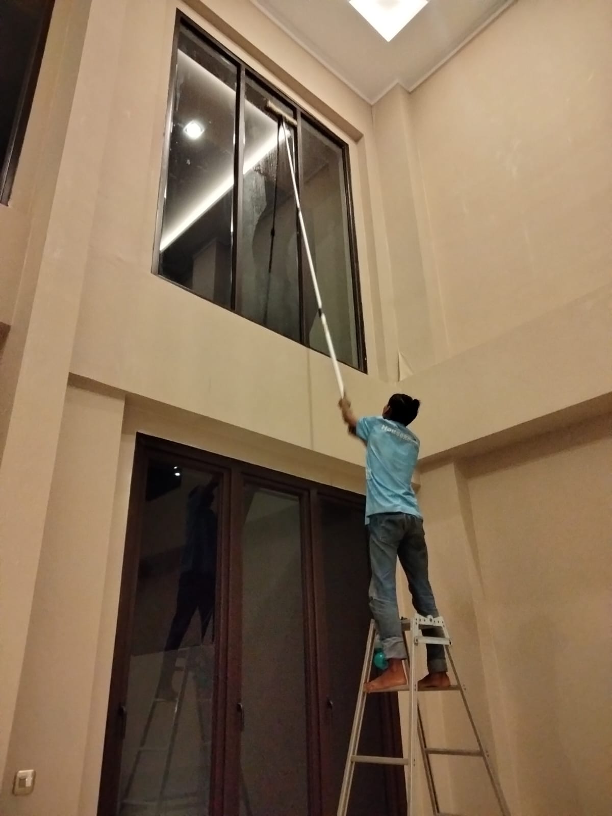 Setelah proses renovasi atau pembangunan, kami memberikan layanan pembersihan menyeluruh dari sisa debu, semen, cat, dan material lainnya. Lantai, dinding, plafon, kaca, hingga furnitur akan dibersihkan hingga siap
